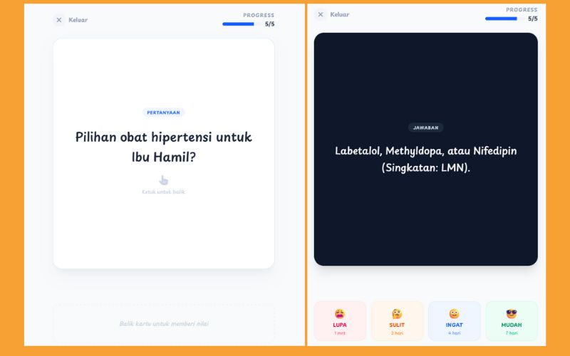 Ribet lo nempel-nempel materi di dinding, pake fitur Flashcard bisa bantu lo buat nginget materi dimana aja, karena lo pasti pegang HP kemana-mana.